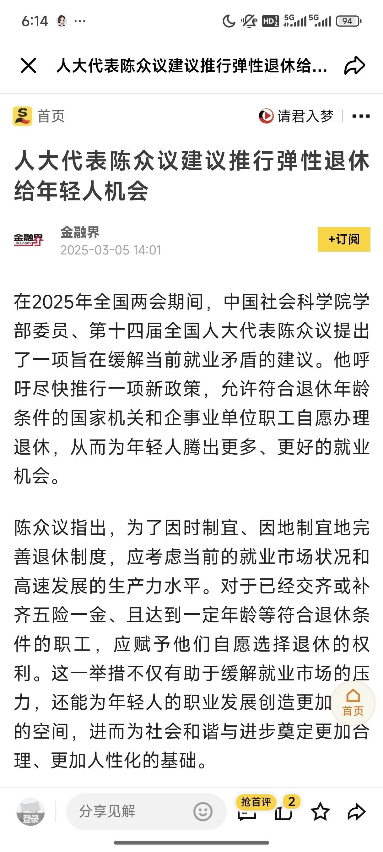 年轻人疯狂点赞的,其实是被看见的渴望。就像陈南儿子说的“别爹味太浓”,不是拒绝关心,而是拒绝居高临下的指点。当00后开始用“躺平”对抗内卷,用“数字游民”打破朝九晚五,他们不是叛逆,只是在找属于自己的活法。就像放风筝,上一代人总怕线断了,可攥得越紧,越容易在强风中撕裂。安徽农业科学院副院长赵皖平代表连续多年建议春节放9天假,今年终于落实——这才是好建议该有的样子:不是替年轻人做决定,而是帮他们扫清障碍,让他们能更自由地选择自己的人生节奏。